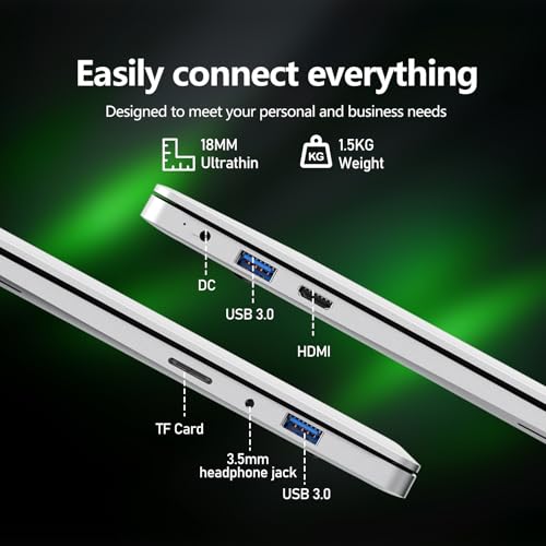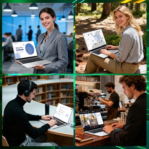 Potencia durante todo el día, diseño portátil: parte superior equipada con una batería de 38 Wh (5000 mAh), esta computadora portátil te mantiene alimentado para un uso prolongado en cualquier entorno, ya sea en casa, en la biblioteca o en movimiento. Su marco compacto mide solo 14.1 x 9.1 pulgadas, se desliza fácilmente en cualquier mochila para una portabilidad sin esfuerzo.