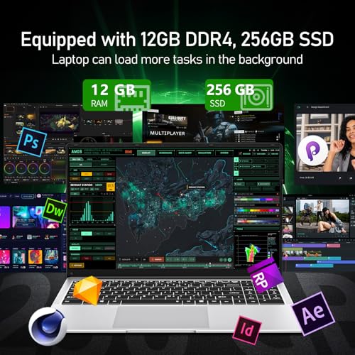 Mantente receptivo y almacena más: computadoras portátiles con RAM DDR4 8G de alta eficiencia para multitarea sin problemas (documentos de estudiantes, aplicaciones de negocios) más un SSD masivo de 256 GB. Experimente el acceso rápido a los datos, despídase de los retrasos molestos y los problemas de espacio de almacenamiento
