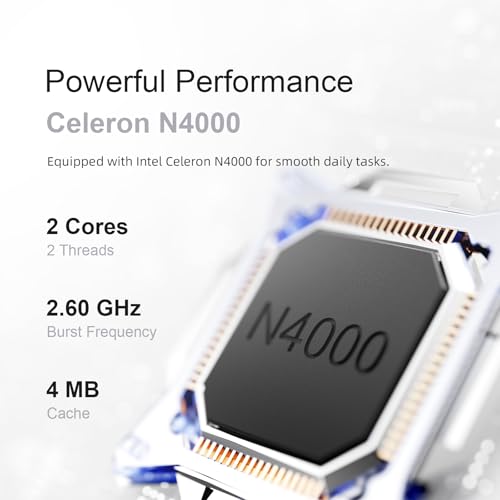 Portátil pequeño de 11.6 pulgadas: la computadora portátil PONKLOIE utiliza procesador Celeron N4000, CPU de doble núcleo con una frecuencia turbo de hasta 2.6 GHz. Equipado con el último sistema Windows 11 Pro preinstalado, proporcionando capacidades multitarea más potentes y un rendimiento de procesamiento gráfico más fuerte.