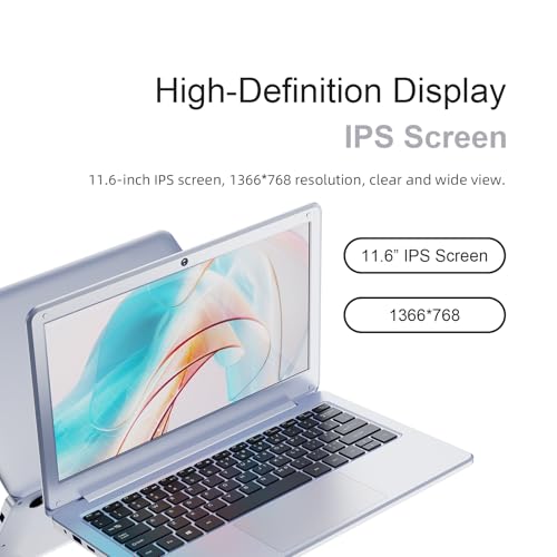 Pantalla FHD de 11.6 pulgadas: la pantalla de computadora portátil delgada de 11.6 pulgadas ofrece una rica experiencia de visualización con su resolución Full HD de 1366 x 768 y relación de aspecto de 16: 9. Nivel IPS, antirreflejo, te permite sentir la visión brillante, experimentar lo vívido y hermoso.