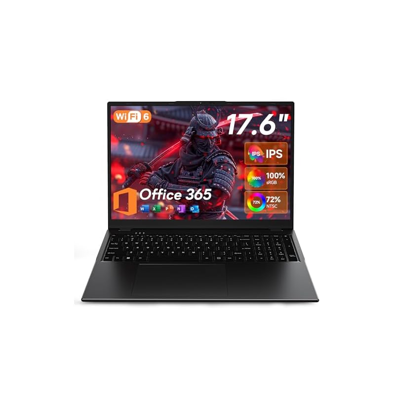 Especificaciones: Computadora portátil FHD de 17.6 pulgadas 2025 con Office 365, 16 GB de RAM y 640 GB de almacenamiento, CPU de 4 núcleos, Windows 11, WiFi 6, Bluetooth 5.2, teclado retroiluminado, portátiles delgadas