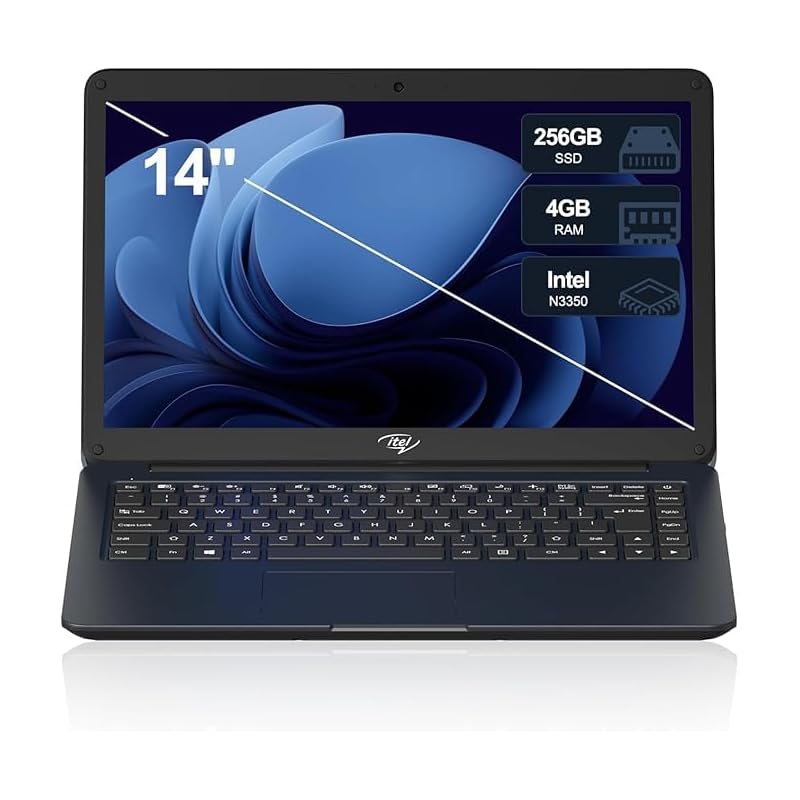 Computadora portátil Itel de 14 pulgadas, Celeron N3350 (doble núcleo), 4 GB de RAM, SSD de 256 GB, diseño ultra delgado, HDMI y USB 3.2, WiFi 2.4G/5G, cámara web, para el hogar