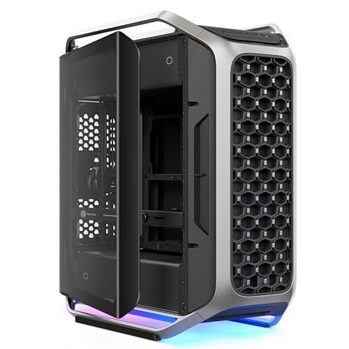 Cooler Master Cosmos Alpha – Carcasa de PC de torre completa Freeform 2.0, diseño giratorio de 15.748 in, GPU de 16.535 in, marco de aluminio curvado de radiador, vidrio templado, ventiladores duales