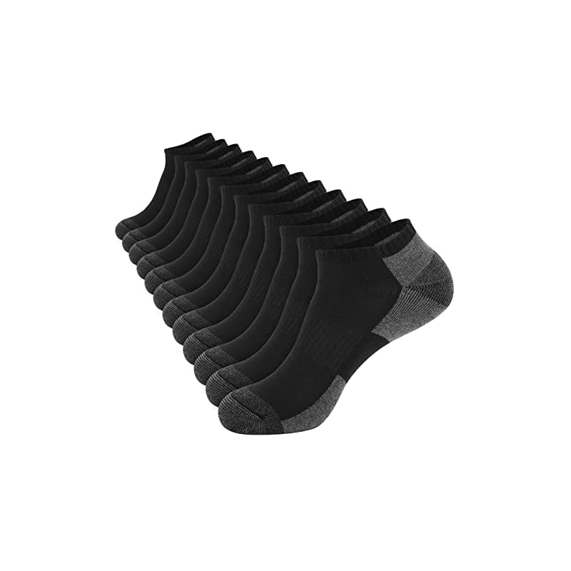 Especificaciones: COOPLUS Paquete de 12 calcetines tobilleros acolchados para hombre, calcetines casuales transpirables de corte bajo (talla de zapato 6-11)