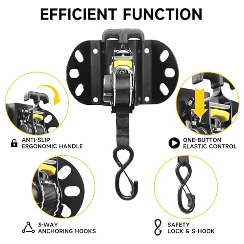 Funcionalidad de alto rendimiento: la correa de trinquete retráctil cuenta con un bloqueo de seguridad y un mango ergonómico antideslizante, evitando eficazmente que la carga se mueva durante el uso o el tránsito. El gancho de anclaje de tres vías y el control elástico de un solo toque ofrecen opciones de anclaje versátiles y un funcionamiento más suave. Si tienes algún problema durante el uso, no dudes en ponerte en contacto con nosotros; nuestro equipo está disponible las 24 horas del día para ayudarte.