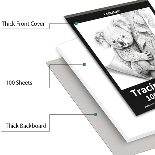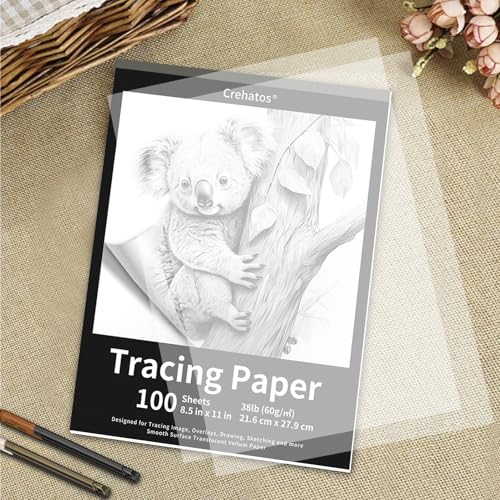 Crehatos Papel de calco de 8.5 x 11 pulgadas, bloc de trazado translúcido, 100 hojas de papel de arte de vitela de 38 libras/2.12 oz/m²