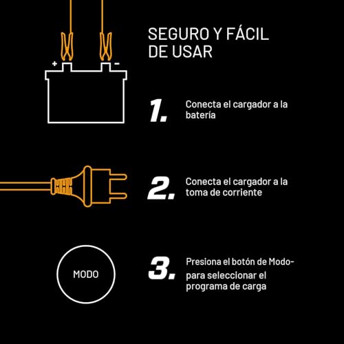 El cargador de batería MXS 5.0 es a prueba de salpicaduras, polvo, chispas y golpes, por lo que es una opción confiable y segura con un diseño a prueba de cortocircuitos que evita la polaridad inversa.