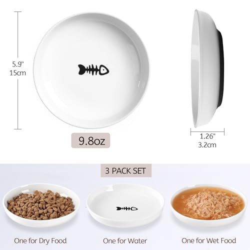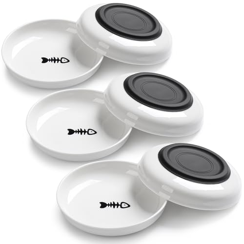 Multiusos: vienen con un juego de 3, los platos poco profundos para gatos son adecuados para alimentos húmedos y secos, agua, leche o aperitivos para gatos. Ideal para gatos de interior, también para otras mascotas, como cachorros, conejos y hámsters.