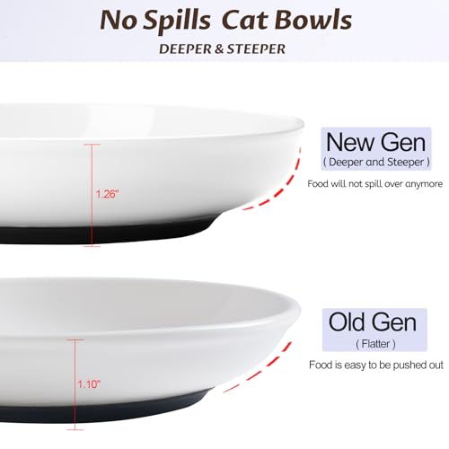 Especificaciones: Cuencos para gatos sin derrames, cuenco de comida para gatos, antifatiga y antifatiga, juego de platos de cerámica saludables para gatos de interior, platos anchos poco profundos para comida y