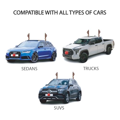 Compatible con la mayoría de vehículos: este accesorio de automóvil de Navidad está diseñado y probado para ser compatible con casi cualquier vehículo. Si las ventanas de su vehículo tienen un marco, funcionaría. O si las ventanas de su vehículo no tienen marco, incluidas las de Tesla, también funcionaría. Si tu vehículo es un vehículo eléctrico con un frunk, nuestra nariz Rudolph también es compatible con él.
