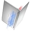 Lleva una carga más ligera: los ventiladores duales, los tubos de doble calor y un diseño de bisagra de caída mantienen tu sistema fresco mientras trabajas, mientras que las nuevas rejillas de ventilación por encima del teclado y debajo de la computadora portátil mejoran el flujo de aire, ayudando a mantener esta laptop más delgada.