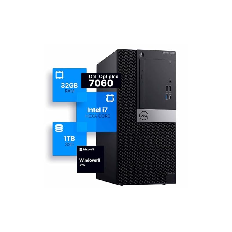 Especificaciones: Dell Optiplex 7060 Tower – Computadora de sobremesa | Intel i7-8700 (3.4) | 32 GB DDR4 RAM | Estado sólido SSD de 1 TB | Windows 11 Professional | PC para el hogar u oficina (renovado)