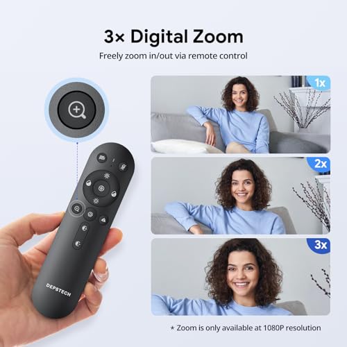 Take Full Control with the Remote: Seamlessly manage your calls and recordings from anywhere using the included remote control. Zoom in up to 3X, mute, switch the camera on or off, and adjust focus and exposure—all with a simple click. The webcam with remote and zoom features provide next-level flexibility for every scenario. (Zoom function at 1080P)