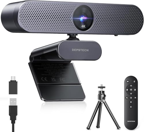 DEPSTECH 4K Webcam for PC, UHD Webcam with Remote and Zoom, Sony Sensor, Dual Noise-Cancelling Mics, Autofocus, Privacy Cover, Computer Camera for Desktop/Laptop, Works with Zoom/Teams/OBS/Google