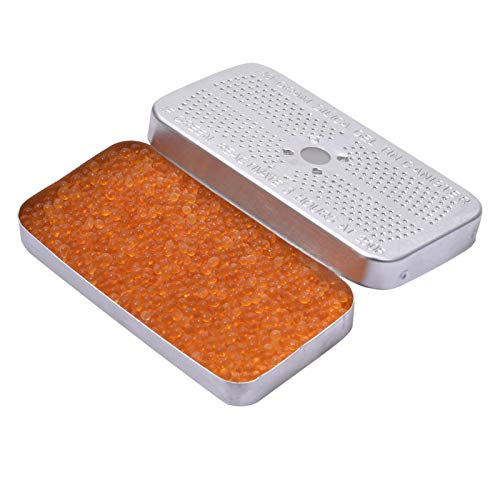 3. Desecante indicador reutilizable: las perlas cambian de naranja a verde, lo que significa que es hora de cargarse. Coloque el frasco en un horno a 280-300 ° F durante 2 a 3 horas, o hasta que las cuentas se vuelvan anaranjadas nuevamente. Las perlas sobresaturadas pueden extender el tiempo de activación.
