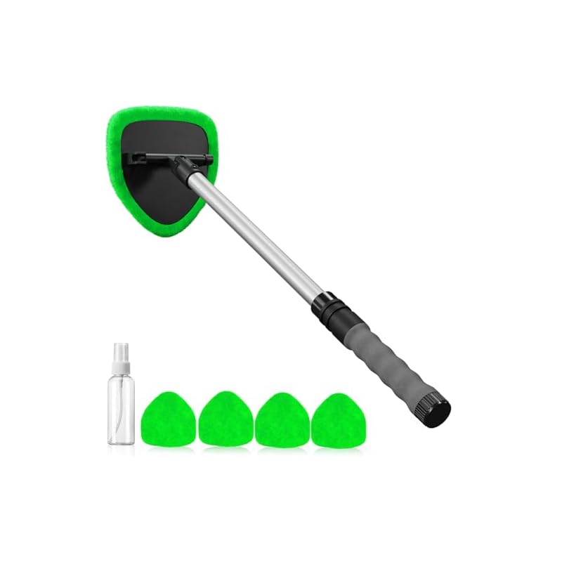 desin Herramienta de limpieza de parabrisas, limpiador de parabrisas de auto con 4 almohadillas de microfibra reutilizables y lavables y mango extensible, kit de limpiaparabrisas interior automático