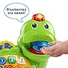 El juguete de dinosaurio reconoce las ocho piezas de comestibles de colores brillantes mientras lo alimentas; proporciona respuestas divertidas mientras come cada pieza