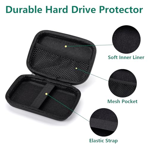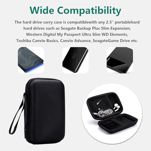 Funda universal para disco duro portátil de 2,5 pulgadas, dimensiones externas: 5,91 x 3,94 x 1,77 pulgadas, dimensiones internas: 5,1 x 3,5 x 1,1 pulgadas; se adapta a Samsung T9 y la mayoría de discos duros externos portátiles de 2,5 pulgadas como Seagate Backup Plus Slim/Expansion/ Game Drive/One Touch, Western Digital My Passport/My Passport Ultra. / WD Elements, Canal Vio Basics/Canvio Advance/ Canvio Flex/ Canvio Gaming/Canvio Slim/ Connect II.