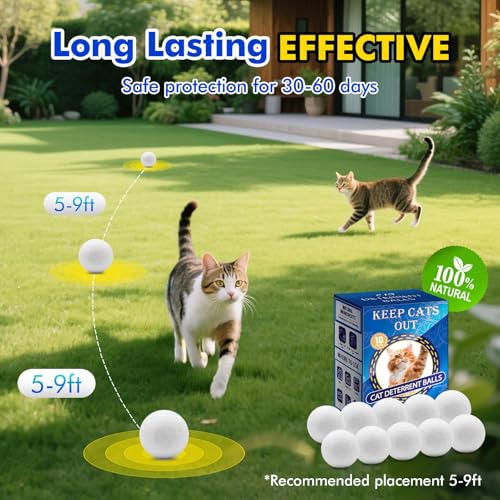 Disuasorio para gatos en exteriores e interiores: paquete de 10 bolas de aceites esenciales 100% naturales repelentes para gatos, mantiene a los gatos alejados del césped, patio, plantas, jardín