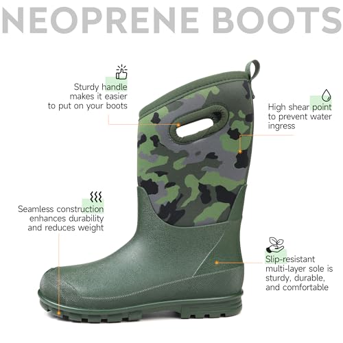 DKSUKO Botas de lluvia de goma para todo tipo de clima, para niños y niñas, botas de barro de neopreno con aislamiento impermeable, botas de nieve de invierno con asas