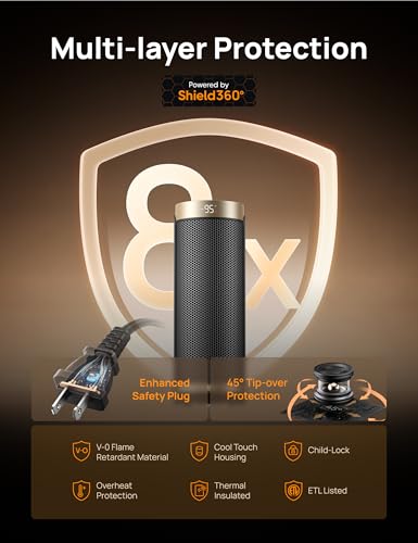 Seguridad certificada por ETL: Hecho de materiales ignífugos V0 con múltiples características de seguridad, incluyendo protección inteligente incorporada, protección contra sobrecalentamiento, temporizador de 12 horas, apagado automático de 24 horas sin interacción, enchufe de 2 clavijas ignífugo V0 y cable de alimentación plano resistente de 6 pies de largo. Uso seguro y sin preocupaciones durante todo el día. Recordatorio de seguridad: no lo use con un cable de extensión. Solo conecta directamente a la toma de corriente.