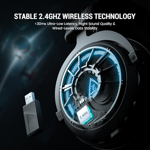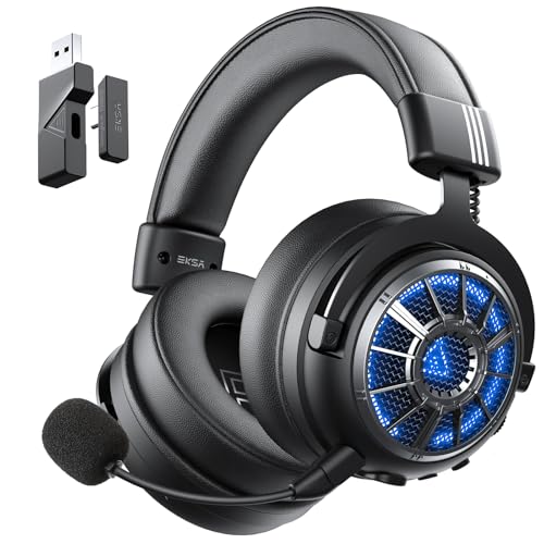 EKSA Auriculares inalámbricos para juegos para PS5, PC, PS4, Mac, Switch, auriculares para juegos con 2.4 GHz, Bluetooth 5.3, sonido envolvente 7.1, micrófono desmontable con cancelación de ruido