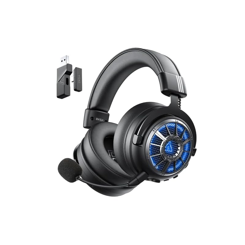 Especificaciones: EKSA Auriculares inalámbricos para juegos para PS5, PC, PS4, Mac, Switch, auriculares para juegos con 2.4 GHz, Bluetooth 5.3, sonido envolvente 7.1, micrófono desmontable con cancelación de ruido