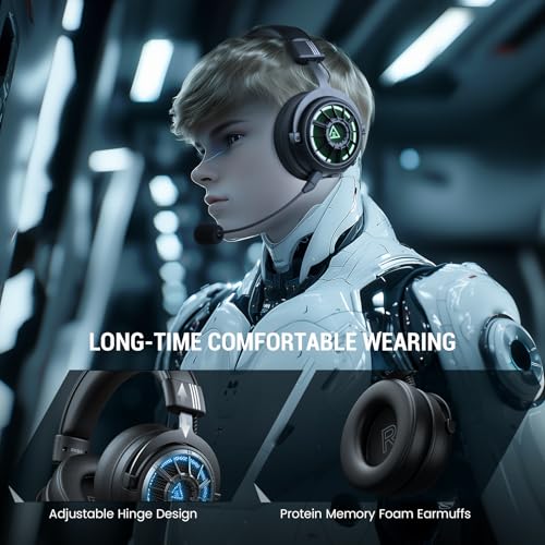 Cómodo de usar: los auriculares adoptan un diseño ergonómico, equipados con almohadillas suaves y diadema ajustable, lo que garantiza un uso cómodo durante todo el día. Las almohadillas especialmente diseñadas son adecuadas para personas que usan anteojos, evitando la presión sobre las orejas y proporcionando un ajuste perfecto. La altura de la diadema se puede ajustar fácilmente de acuerdo a las necesidades personales, asegurando comodidad ya sea para largas sesiones de juego o uso diario.