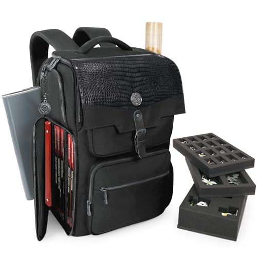 ENHANCE Collector’s Edition DnD Backpack – RPG DM Bag for Dungeons and Dragons – DnD Bag fits 6-8 Books, 18″ Laptop/DM Screen Slot, Miniature Foam Trays, Accessory Pockets, Map Strap (Dragon Black)