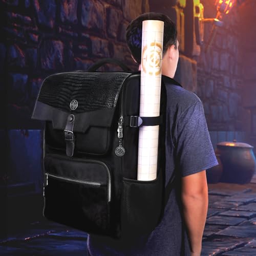 Especificaciones: ENHANCE Collector’s Edition DnD Backpack – RPG DM Bag for Dungeons and Dragons – DnD Bag fits 6-8 Books, 18″ Laptop/DM Screen Slot, Miniature Foam Trays, Accessory Pockets, Map Strap (Dragon Black)