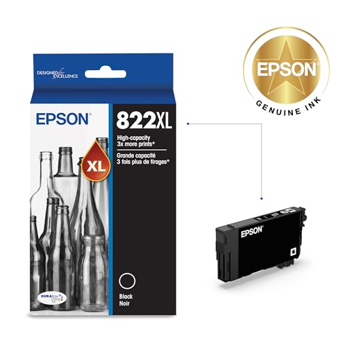 EPSON 822 DURABrite Ultra Ink Cartucho negro de alta capacidad (T822XL120-S) funciona con WorkForce Pro WF-3820, WF-3823, WF-4820, WF-4830, WF-4833, WF-4834