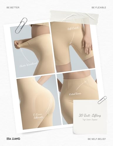 Esa Liang Fajas moldeadoras para mujer, con control de abdomen, cintura alta, pantalones cortos moldeadores de muslos, moldeador de cuerpo debajo del vestido