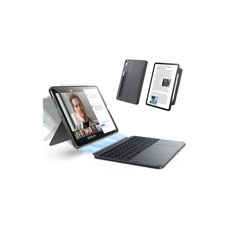 Diseño magnético desmontable: una conexión magnética segura te permite conectar el teclado para escribir o quitarlo para una experiencia de tableta optimizada, perfecta para leer, ver o dibujar; transforma instantáneamente tu iPad en una computadora portátil y viceversa