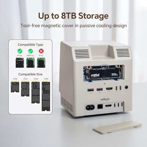 Carcasa SSD NVMe M.2 (hasta 8 TB): el gabinete M.2 SSD NVMe integrado admite unidades de 2230 a 2280, ofreciendo almacenamiento ampliable masivo con velocidad ultrarrápida, mientras que se dobla como un disipador de calor eficaz.