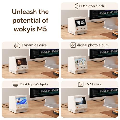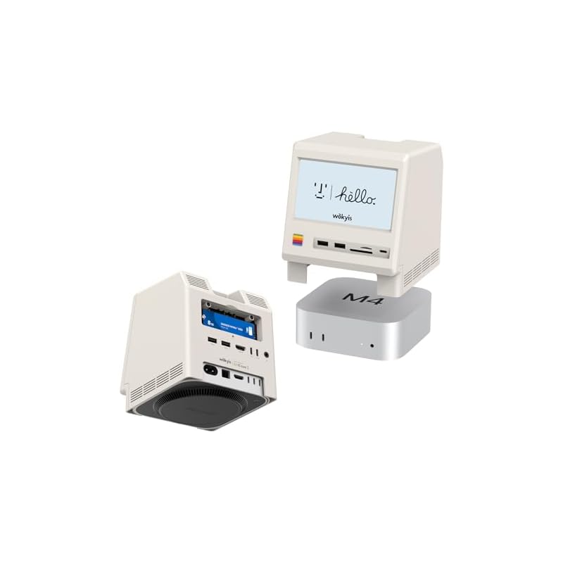 Estación de acoplamiento retro M5 para Mac mini M4, pantalla HD de 5 pies, carcasa SSD NVMe M.2 de 10 Gbps, lector SD/Micro SD 4.0, 4 USB-A 1 USB-C 10 Gbps, conector para auriculares de 0.138