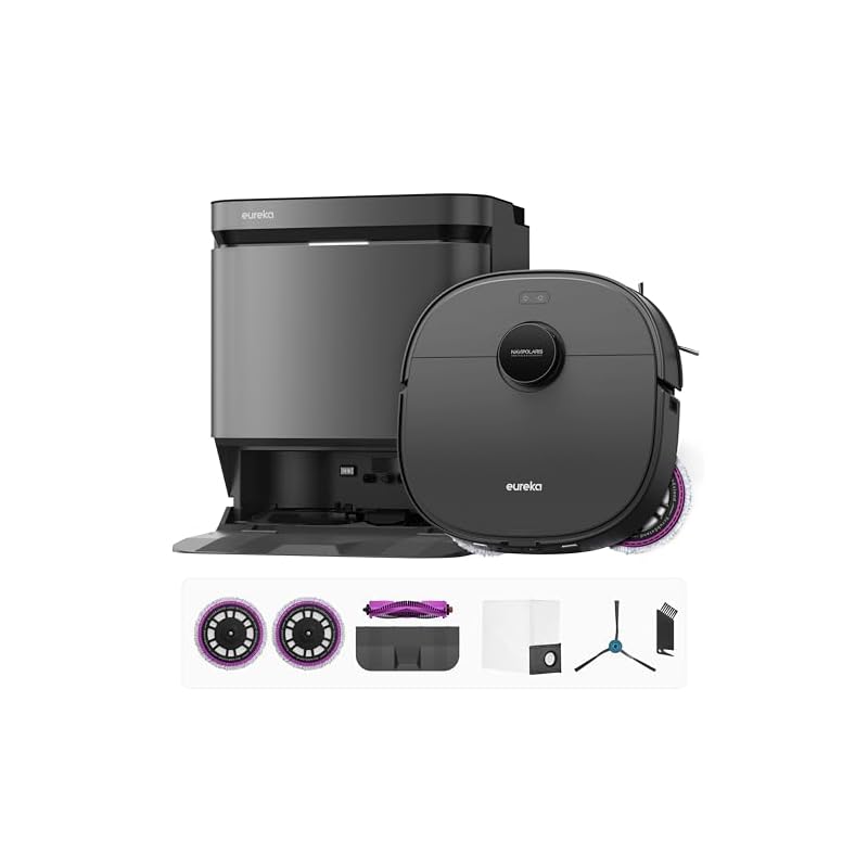Especificaciones: Eureka J15 Pro Ultra Robot Aspirador y trapeador con base de vaciado automático, succión de 16,200 Pa, mopa de diseño de brazo flexible, trapeador automático de lavado con agua caliente y secado con