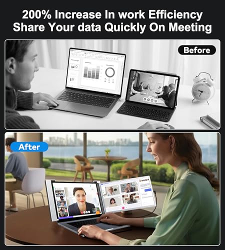 Duplica tu productividad: extensor de pantalla para portátil: amplía tu espacio de trabajo y eficiencia con este monitor portátil de 14 pulgadas. La configuración de doble pantalla permite realizar múltiples tareas sin problemas, perfecta para profesionales que necesitan presentar contenido mientras mantienen su flujo de trabajo.