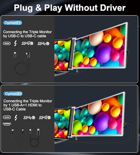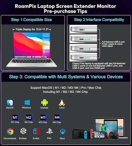 [Compatibilidad universal] Extensor de monitor para portátil: conéctese sin esfuerzo a computadoras portátiles (14-17 pulgadas) y consolas de juegos a través de puertos HDMI tipo C y Mini HDMI con funciones completas. La verdadera operación plug-and-play funciona con sistemas Windows, Mac y Android.