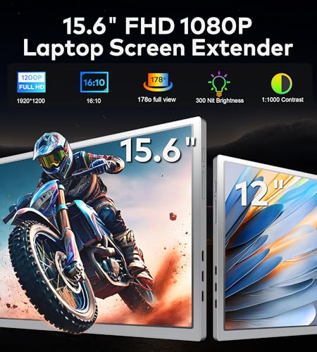 Extensor de pantalla para laptop, monitor portátil FHD 1080P IPS de 15.6 pulgadas para laptop, extensor de monitor dual para portátiles de 13 a 17.3 pulgadas, compatible con MacOS, Windows