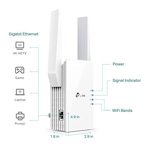 Especificaciones: Extensor WiFi AX1500 certificado restaurado con amplificador de Internet, compatible con OneMesh (RE505X) (renovado)