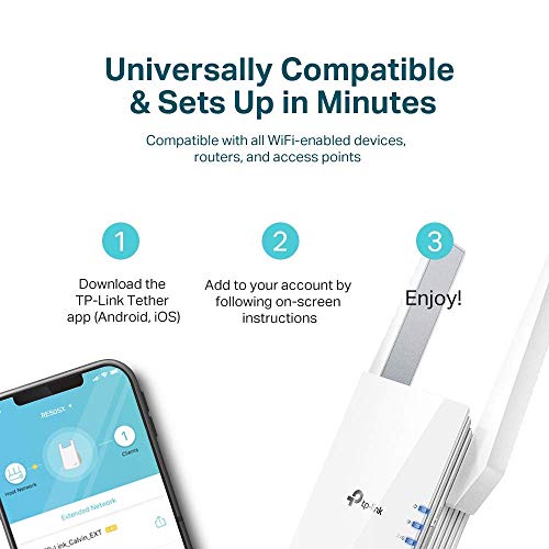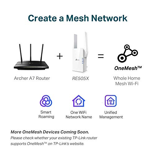 Extensor WiFi AX1500 certificado restaurado con amplificador de Internet, compatible con OneMesh (RE505X) (renovado)