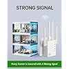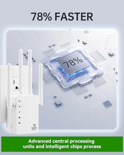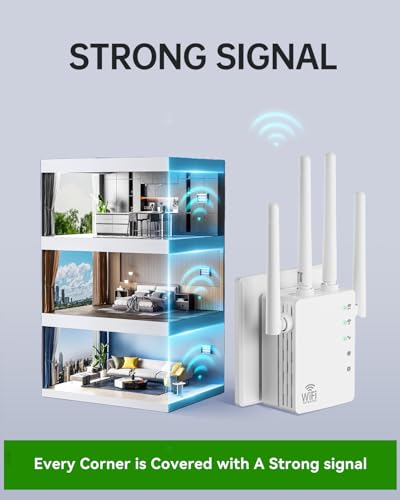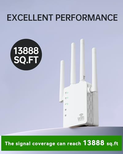 Cobertura superior: este amplificador de señal WiFi cuenta con un potente chipset que extiende eficazmente las señales inalámbricas hasta 13888 pies cuadrados. Su capacidad para penetrar paredes y pisos ofrece una cobertura perfecta a cada rincón de su hogar, por lo que es ideal para juegos en línea y videollamadas.