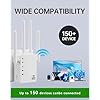Amplia compatibilidad con dispositivos: este extensor de señal WiFi admite frecuencias de doble banda de 2,4 GHz/5 GHz y puede conectar hasta más de 150 dispositivos simultáneamente, asegurando cero retrasos y sin desconexiones en todo.