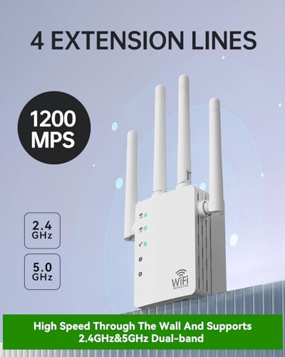 Especificaciones: Extensor WiFi, extensor WiFi amplificador de señal de doble banda (5.0G y 2.4G) AC1200Mbps 10 veces más rápido WiFi 6 cobertura a 13888 pies cuadrados y más de 150 dispositivos, extensor de alcance