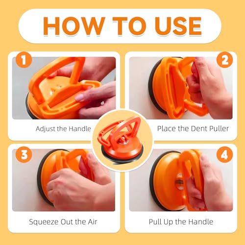 【Succión portátil y potente】Este extractor de succión de abolladuras de automóvil el mango no es fácil de romper y duradero. Los angeles succión de goma inferior es fuerte y sin costuras, y no raya Los angeles pintura de tu automóvil. Los angeles gran herramienta de reparación de abolladuras para automóvil tiene una succión horizontal máxima de 110 libras y una succión vertical máxima de 77 libras. Para grandes áreas de daño, utiliza un extractor más grande; para reparaciones más delicadas, utiliza un extractor más pequeño.