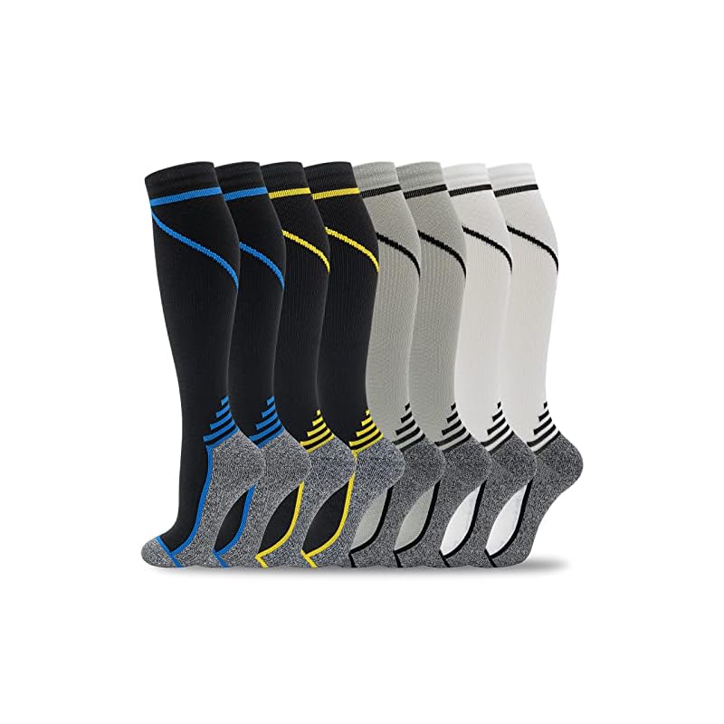 Especificaciones: fenglaoda – Calcetines de compresión para hombres y mujeres, 8 pares, 20-30 mmHg, hasta la rodilla, deportivos, para enfermeras, embarazadas, correr, médicos y viajes