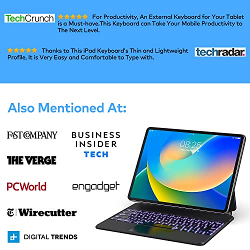 Especificaciones: Funda de teclado para iPad Air de 11 pulgadas (M3 2025 / M2 2024) y iPad Pro de 11 pulgadas (1ª/2ª/3ª/4ª generación), funda magnética con teclado de estilo mágico con trackpad multitáctil para iPad