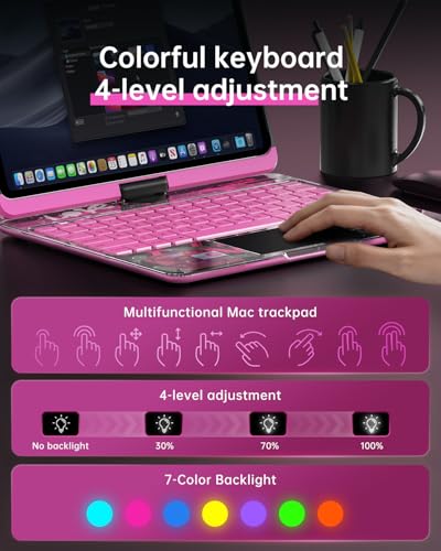 Especificaciones: Funda de teclado transparente con trackpad para iPad de 11ª generación A16 (2025) y 10ª generación de 10.9 pulgadas (2022), teclado Bluetooth inalámbrico retroiluminado de 7 colores con soporte