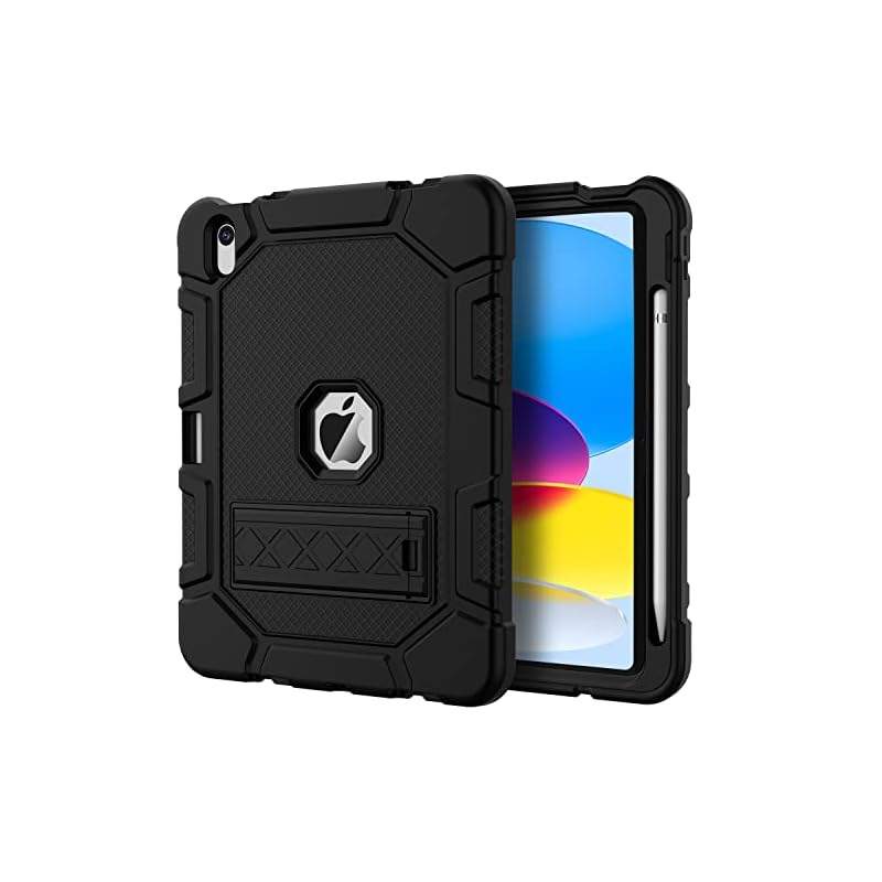 Funda para iPad 10.ª generación de 10.9 pulgadas, 2022, soporte integrado para lápiz Apple, funda protectora resistente a prueba de golpes, negro