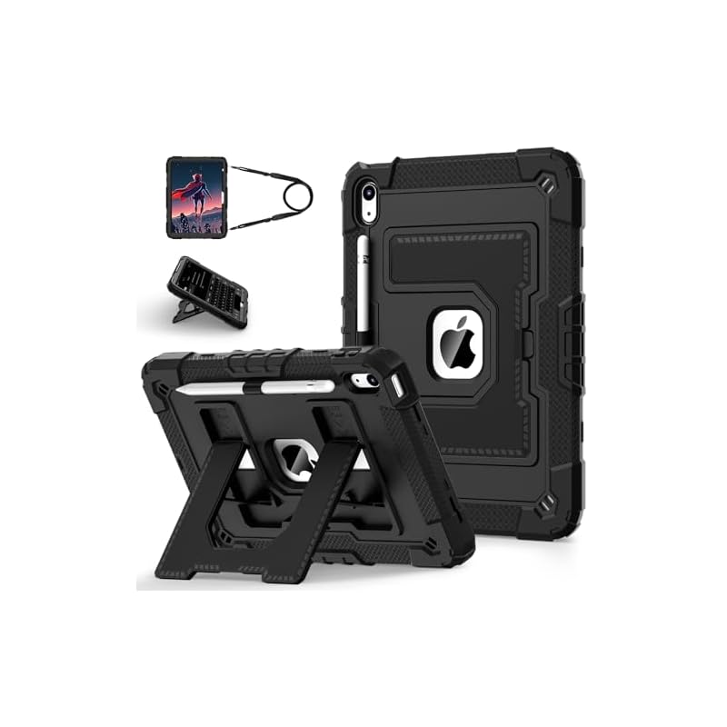【Funda multifunción para iPad】Todos los puertos están donde deberían estar, no te preocupes por proteger el sensor o la cámara, bordes elevados para proteger la cámara, la súper absorción de impactos proporciona protección completa del cuerpo. Funda para iPad de 10ª generación con una ranura para bolígrafo para almacenar tu bolígrafo para que puedas encontrar fácilmente tu bolígrafo en cualquier momento. La correa de hombro ajustable y desmontable proporciona una nueva función de asistencia, hace que tus manos estén libres. (Protector de pantalla y lápiz no están incluidos)